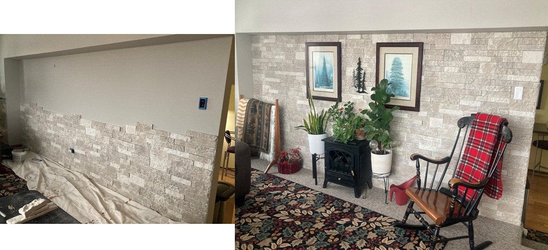 Some before and after pics of my two walls. Love it so much I plan to do another wall in our second home!