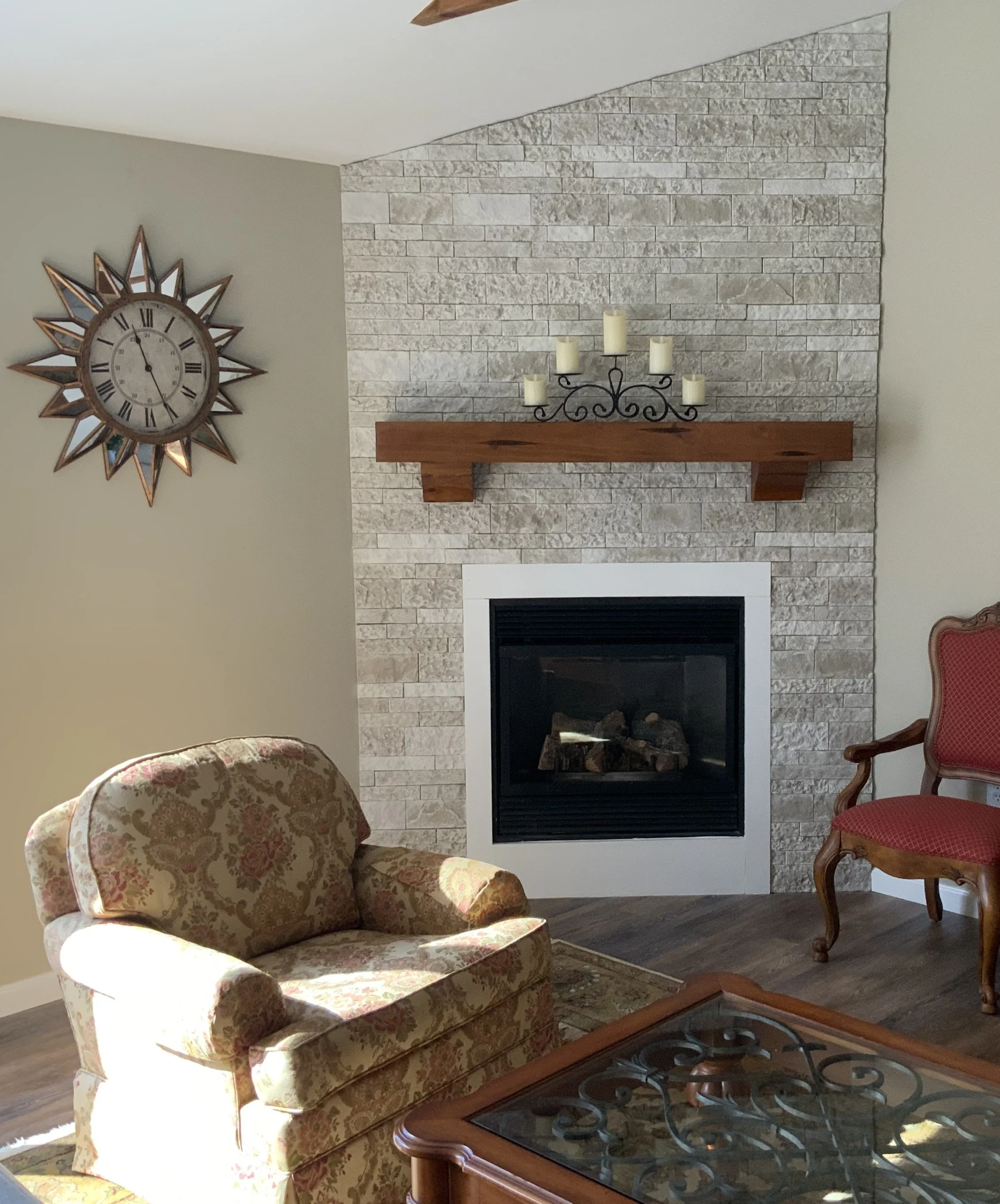 For years, I’ve been trying to come up with a way to way to give our old tile fireplace a makeover. Recently I discovered your product on Facebook. Thank you AirStone! We are so happy with the results!